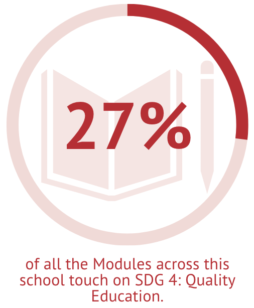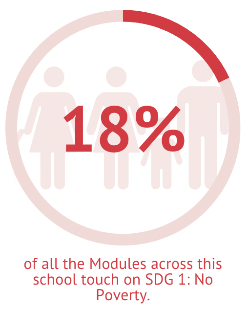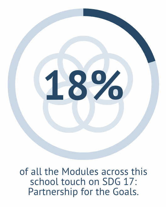 The images below indicate the percentage of Modules which engage with each Sustainable Development Goal within teaching in the School of International Relations. It is important to note that the percentages displayed here are based on the total number of Modules which have been analysed for their engagement with the SDGs. This is not necessarily indicative of every live Module in the School.