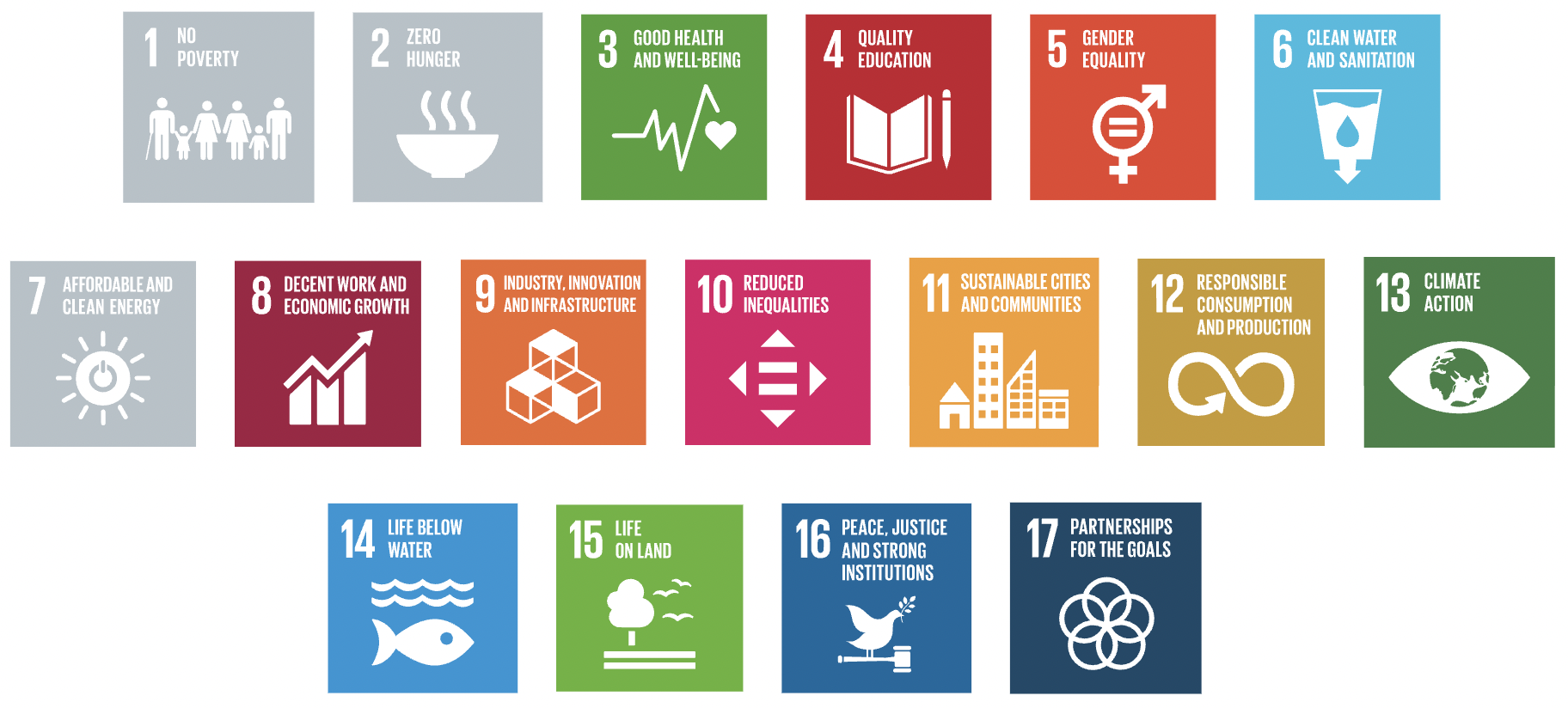 As a University, we are currently in the beginning stages of engaging with the Sustainable Development Goals. Some data collection is still under critical debate and so the images below show an initial display of how the School of Psychology and Neuroscience currently feel they are most engaging with the goals. The SDGs highlighted in colour indicate that there is some degree of engagement with the goal, and those in grey are not currently engaged with during teaching.